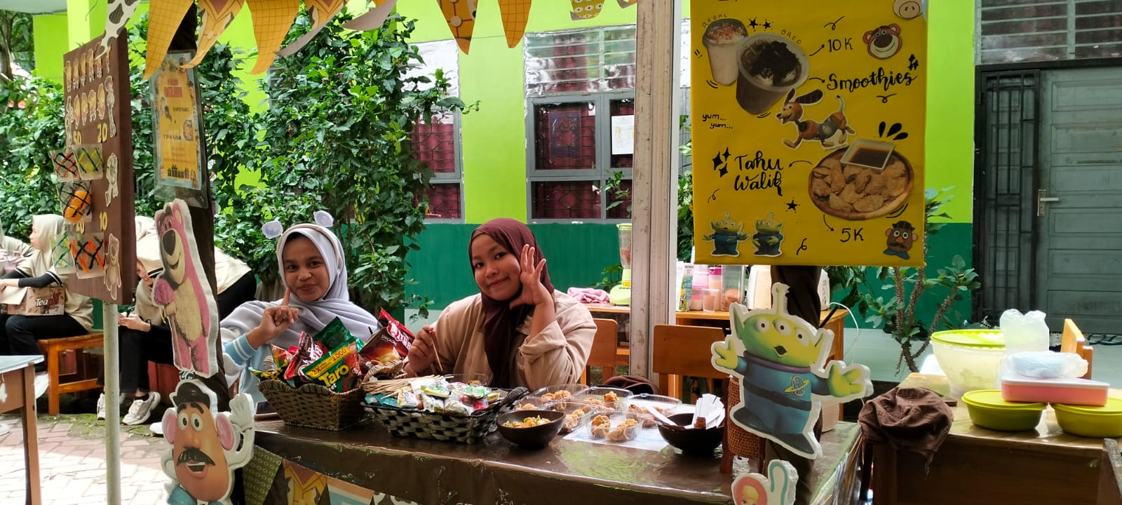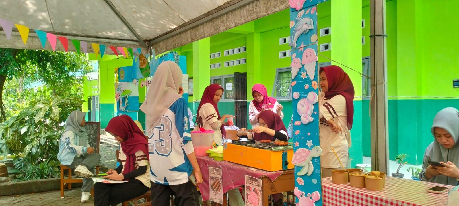 Kerjasama: Bekerja sama dengan teman-teman sekelas untuk mengelola stan dan melayani pembeli.