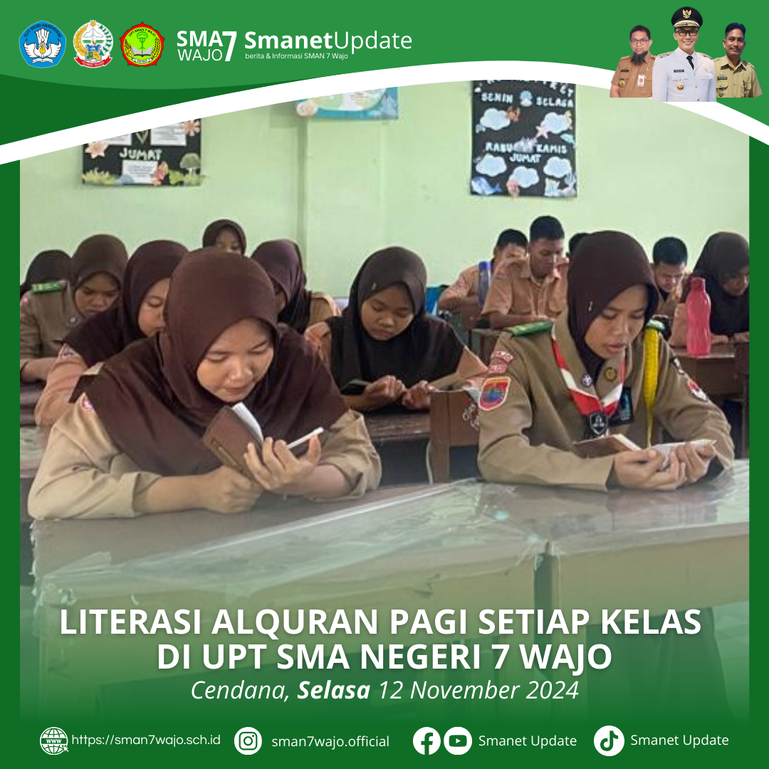 Literasi Alquran Pagi disetiap kelas sebelum memulai pembelajaran Hari Kamis 14 November 2024 - UPT SMA NEGERI 7 WAJO