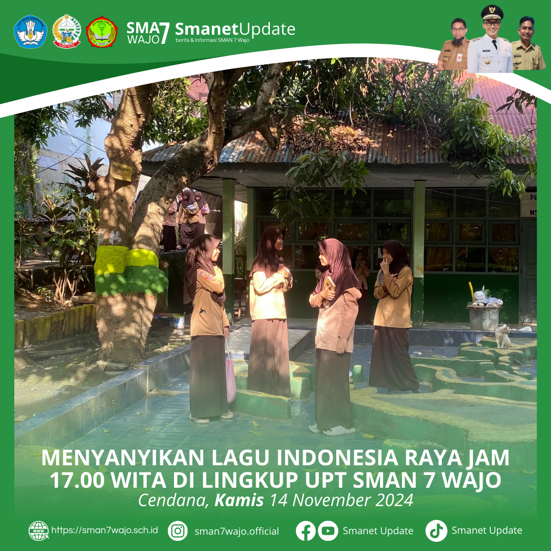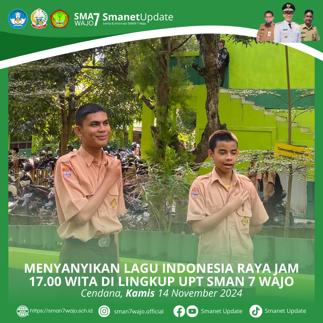 health-check domain was triggered too early. This is usually an indicator for some code in the plugin or theme running too early. Translations should be loaded at the init action or later. Please see Debugging in WordPress for more information. (This message was added in version 6.7.0.) in /home/u1806477/public_html/wp-includes/functions.php on line 6131Cendana – Menyanyikan Lagu Indonesia Raya jam 17.00 WITA dilingkup UPT SMA Negeri 7 Wajo | Kamis 14 November 2024