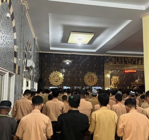 Potret sholat Dzhur Berjamaah Di Masjid Jabal Ilmi – UPT SMAN 7 Wajo yang di ikuti oleh seluruh siswa/i UPT SMAN 7 Wajo