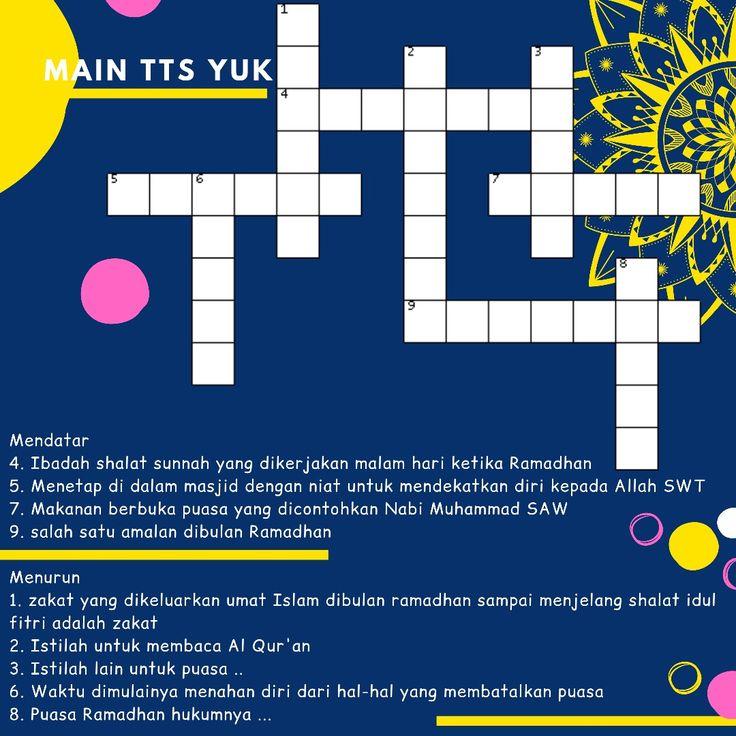 TEKA TEKI SILANG Khusus Ramadan UPT SMAN 7 Wajo Jumat 14 Maret 2025 Silahkan diisi dengan benar ! Yuk, uji pengetahuanmu tentang Ramadan dengan bermain Teka-Teki Silang (TTS) Ramadan! ✨..