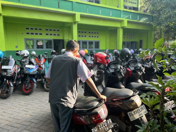 Pengaturan parkiran pelataran 1 UPT SMAN 7 Wajo | Selasa 1 Oktober 2024