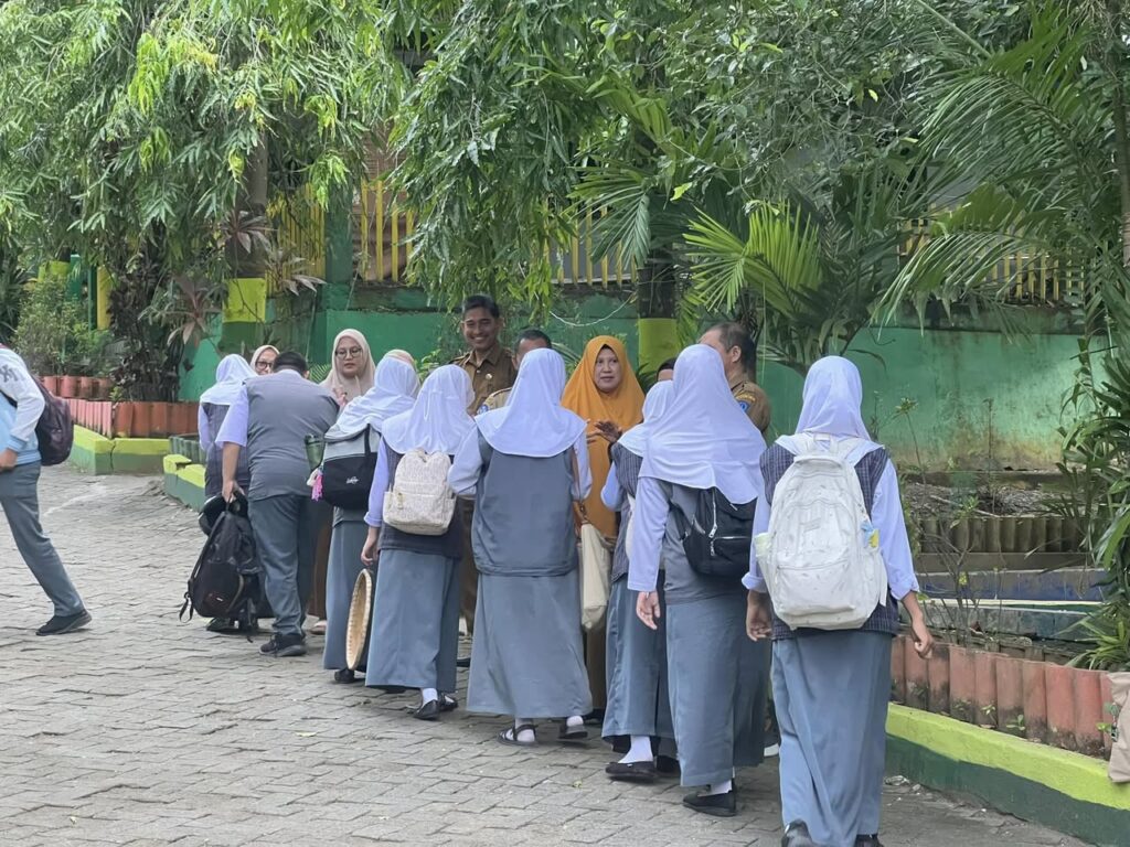 Cendana – Pagi hari Selasa 18 Februari 2025 sebelum pembelajaran dimulai, tradisi atau kebiasaan dalam menyambut kedatangan siswa ke sekolah dilakukan sebagai wujud budaya positif (Senyum, Salam, Sapa, Sopan dan Santun) dilingkungan sekolah.